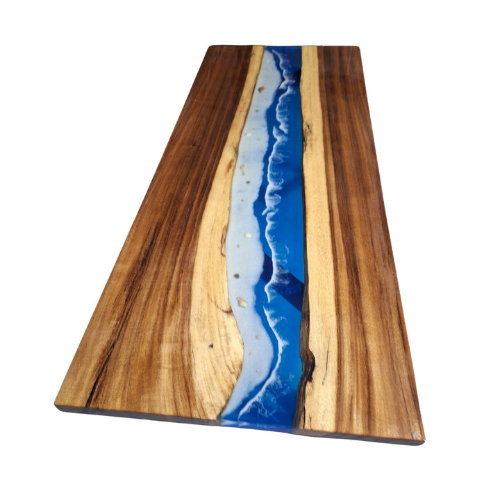 - Epoxy rivier: Blauwe transparante epoxy met strand-inleg